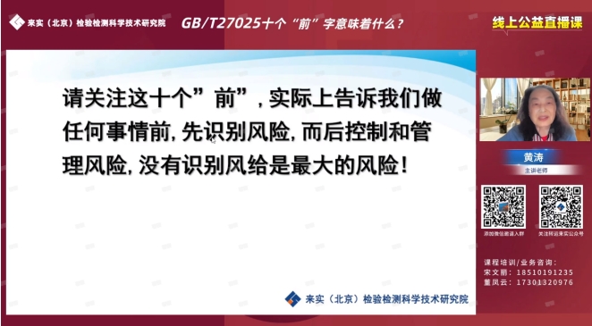 黄涛院长主讲GB/T 27025 十个“前”字意味着什么——公益直播圆满举行